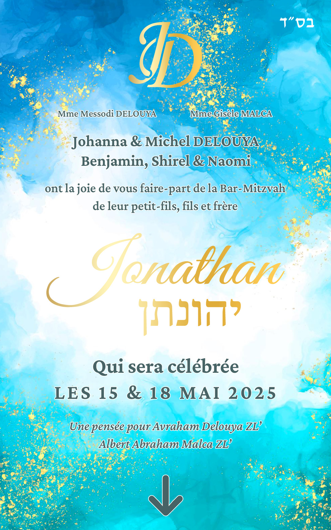 Nous serons heureux de partager ce moment avec vous leJeudi 15 mai 2025à 08h15 Synagogue Makom Thora 19 rue Céline Robert, 94300 Vincennes L'office sera suivi d'un brunch
